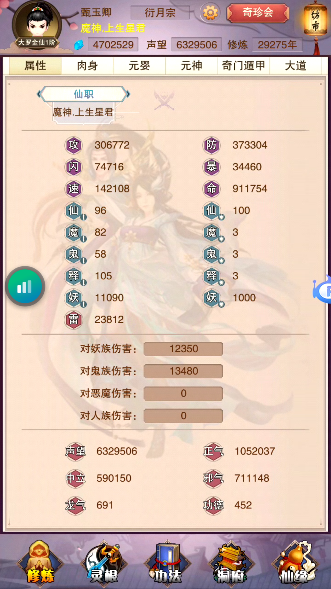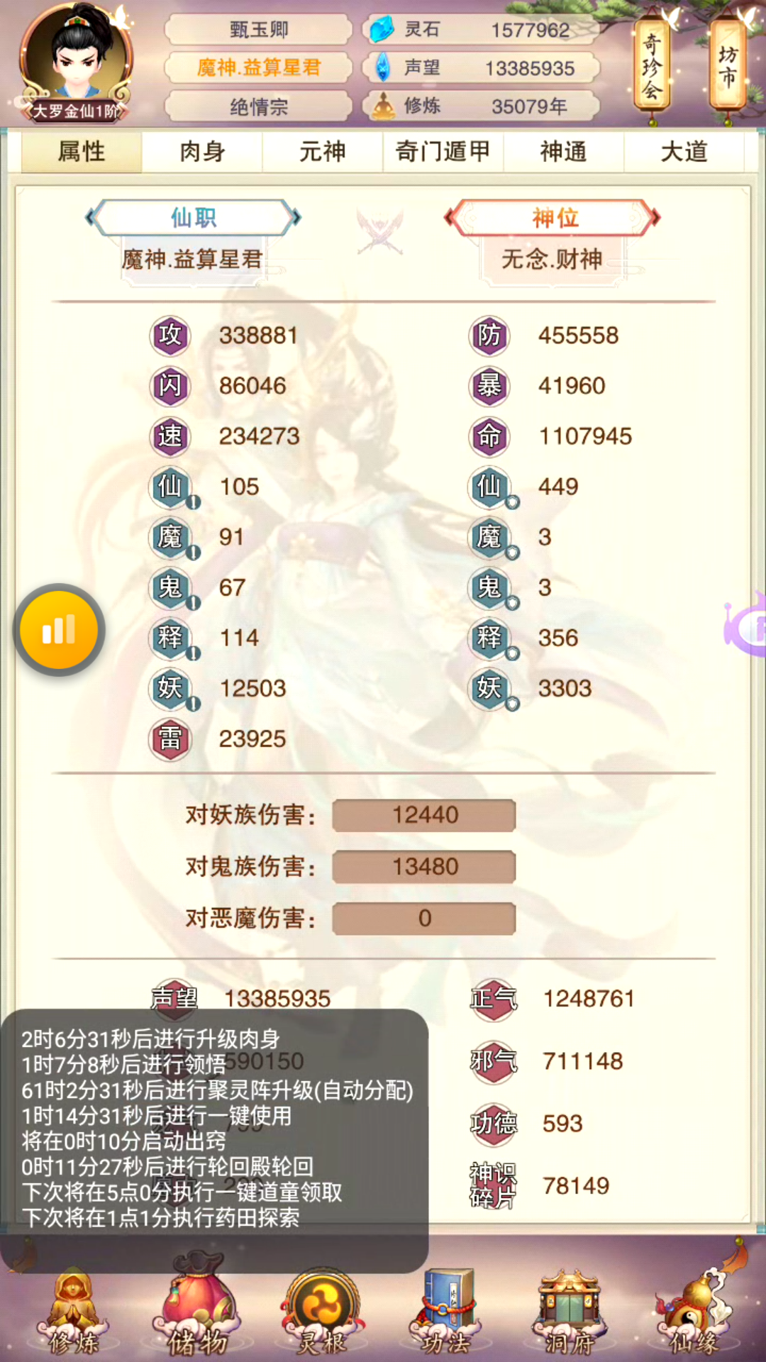 别说,神界这是真的香啊,2个月加了3.2万攻击,8.2万防御。没的说,这属性加的🐮