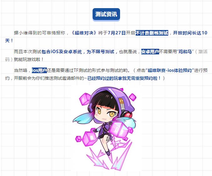 《超维对决》7月27日不计费删档测试