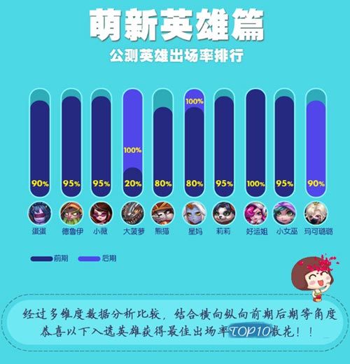 《萌新出击》的玩家们都知道,在游戏前期和后期往往出场英雄天差地别,那么前后期大家最爱的英雄都有哪些呢?