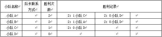 相同的两个小队的比赛只记录一次结果,不叠加。