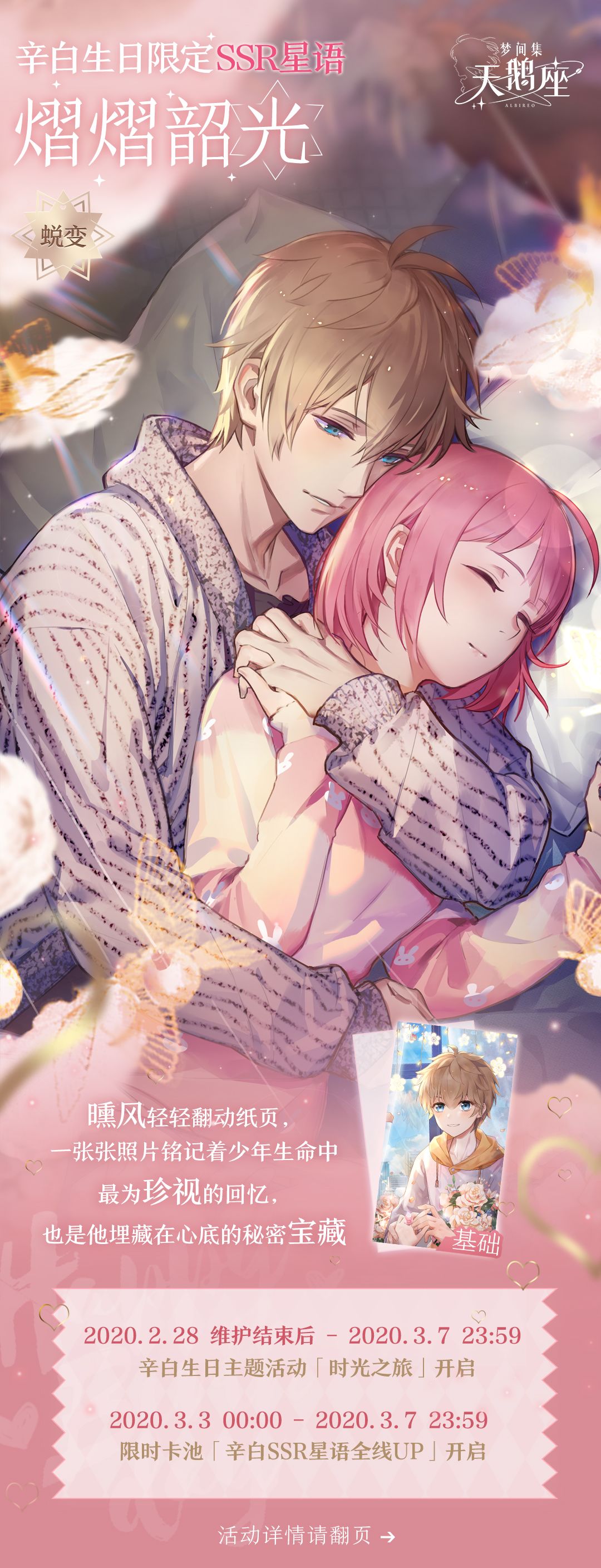 ❀活动奖励:辛白生日限定SSR星语、辛白生日限定R星语、各种稀缺资源等~