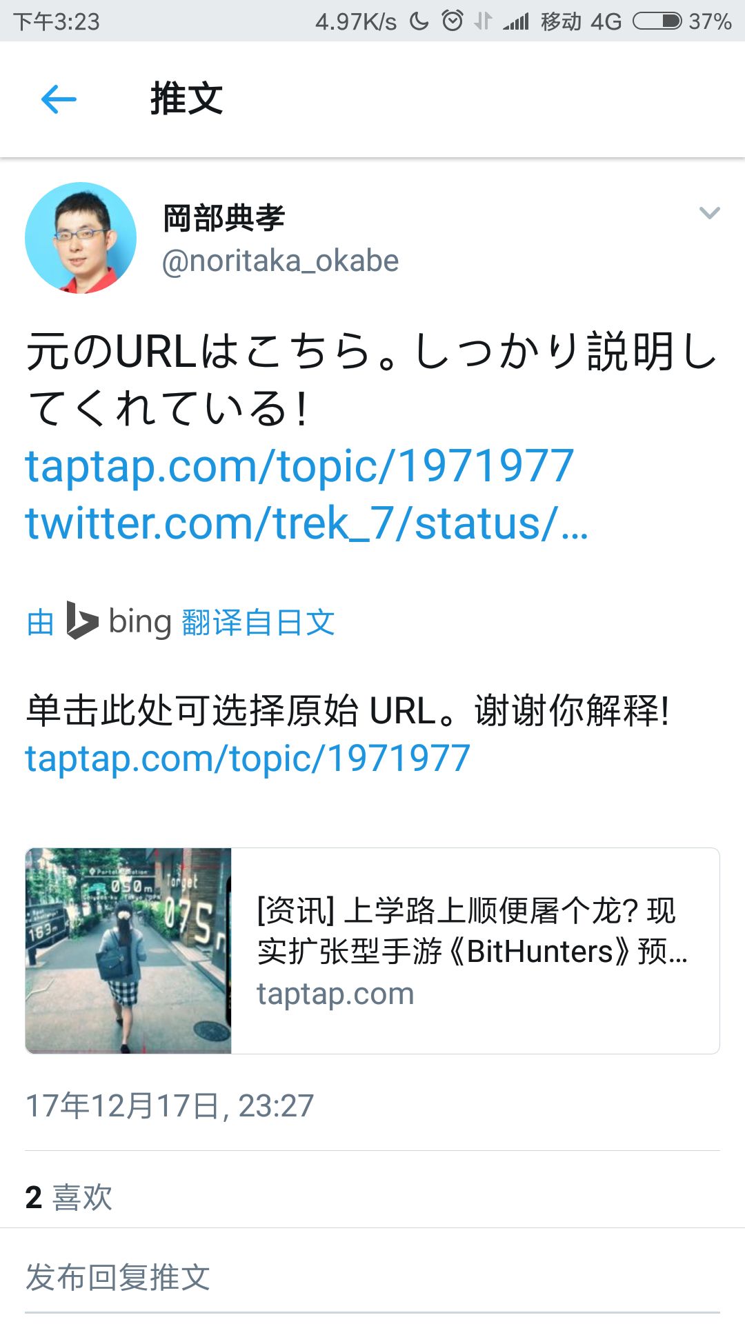 说实话,说不定国服真的可以玩,你们的优秀程度打动了real world games的官方人员 他们在推特发推文都是直接发tap的链接(笑死在街上.jpg)