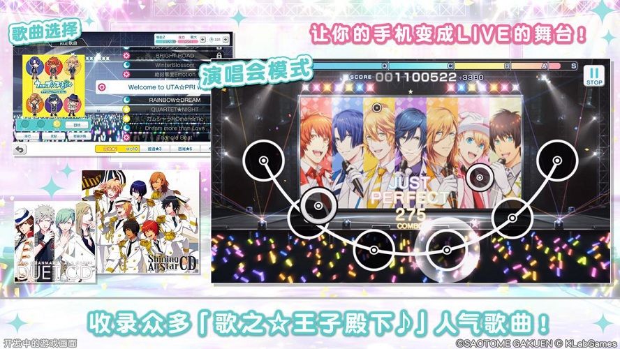 欢迎来到《歌之王子殿下:闪耀之星》的世界!作为一款有着超高人气IP《歌之☆王子殿下♪》、超强声优阵容(铃村健一、谷山纪章、宫野真守等深受女性粉丝喜爱的声优)、与偶像之间丰富互动的音乐节奏游戏,拥有着丰富的IP原创歌曲,那么让我们详细了解一下“演唱会”吧!