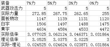 由于点了好战分子里的暴击率提升,会有一点暴伤提升,具体多少不清楚,但由上面的数据可以看到超出255属性的力量,确实对暴击伤害倍率有一定的提高。而且提高的值和STR/5.1的值相符!(啊哈!破案了!(๑╹ヮ╹๑)ノ )