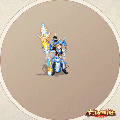 除了衣服之外,此次新时装的头饰也设计得相当精巧。男角色头上戴的银冠,以及头冠上镶嵌的蓝色绒球元素都是《长坂坡》中赵云扮相的重要元素,大话手游根据角色种族的不同,设计了各有特色的头饰配件,不仅和时装十分搭配,动态效果也十分流畅自然。