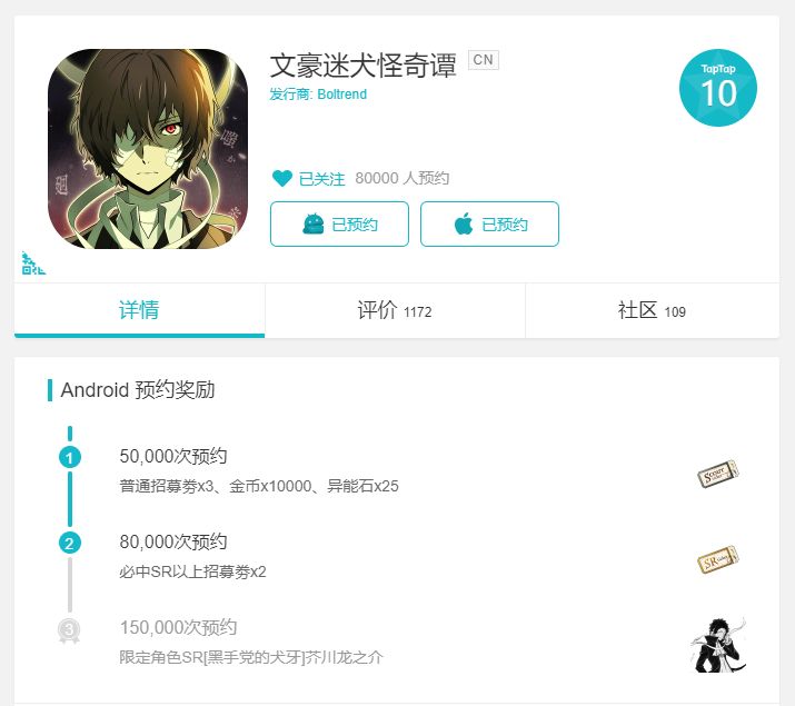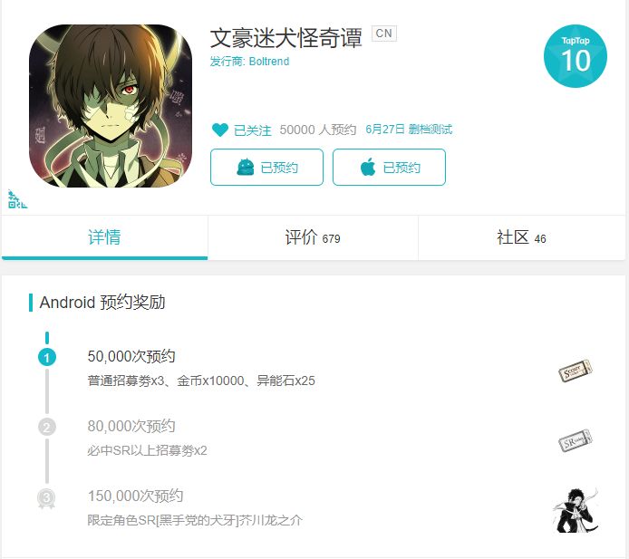 在本帖下为《文豪迷犬怪奇谭》TapTap预约加油呐喊,我们将从中抽取10位异能者获得神秘公测大礼哦!