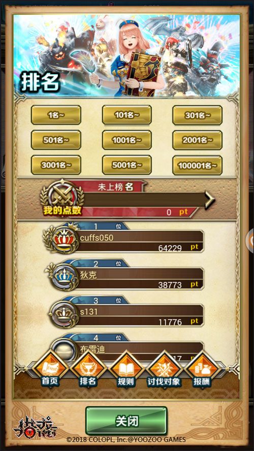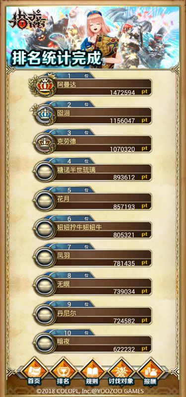 在锦标赛结束后,猎人公会特派员将根据猎人们当前累计积分进行排名,榜上有名的猎人们将获得相应的排名奖励。
