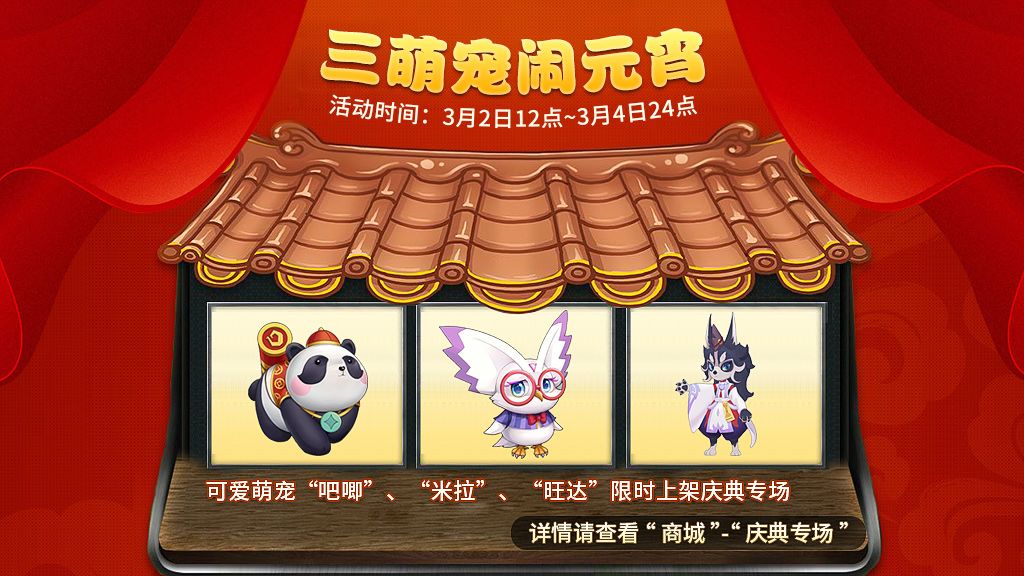 ❀活动内容❀:活动期间,可爱萌宠“吧唧”、“米拉”、“旺达”限时上架「庆典专场」,快把它们带回家吧。