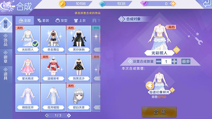 服饰合成需要消耗对应服饰的碎片,如上图中的高档套装光彩照人,就需要150个仙迷幻想碎片合成。服饰合成和服饰打造类似,这里点击服饰碎片后,就可以查看到获取的途径。