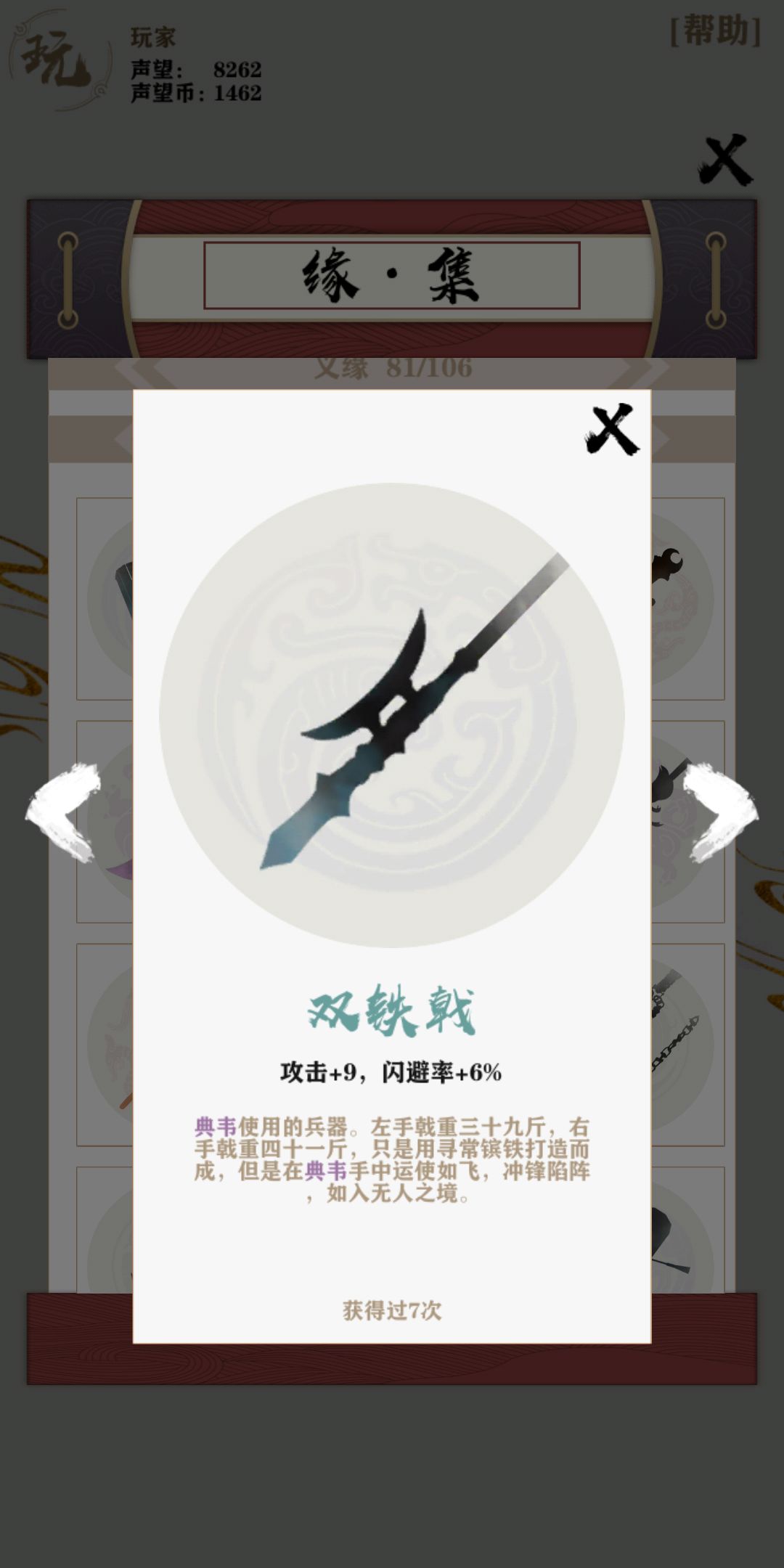 买了典韦的武器卖了典韦后变成了庞统的武器 (庞统买了后好像在典韦出售前的位置