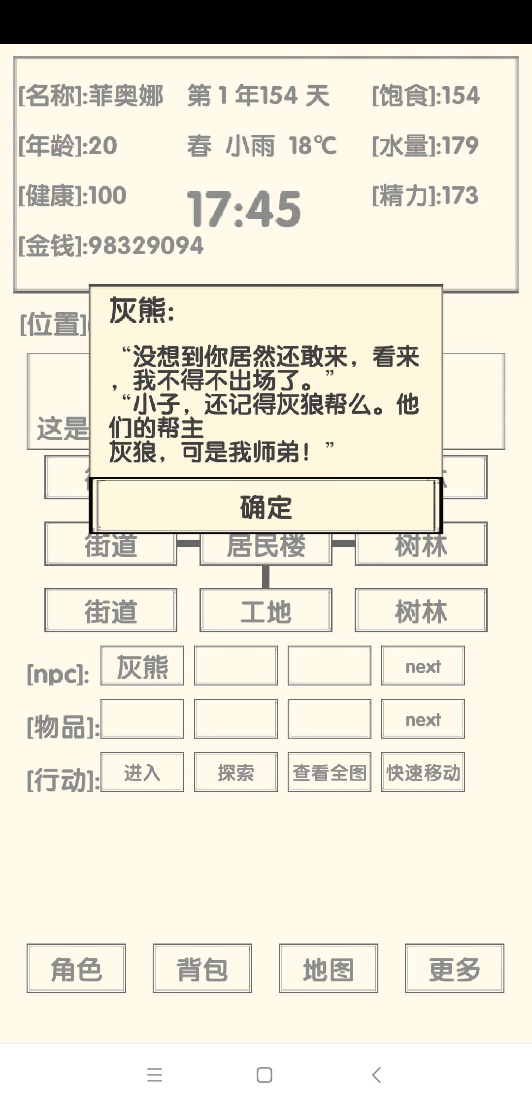 简单说下我的发展流程,前期身无分文可以去工地搬砖,积累初始财富,然后去杂货铺买雨伞20元,买地图100元,然后点查看全图找到矿山,向着矿山出发,到矿山以后点探索会提示发现铁矿石,然后捡起来,够10个以后查看全图找到铁匠铺,和铁匠对话交易能换取1000元。慢慢发家致富后,吃喝不愁了,要想更快赚钱可以把格斗提高到100,就可以到格斗俱乐部教学了,30分钟2000元,也可以学识提高到300去学校教学,大型30分钟3000元。下一步是要强大起来。这个游戏敏捷很重要,你的敏捷高于敌人,那么躲避率90%,只要不是非酋,很轻松战胜敌人。那么我们就去肝敏捷吧,我是直接肝到3100敏捷,然后弄把趁手的武器。这个游戏的武器不能卖钱,要不然早就暴富了,但是有个好处就是可以不用买,直接战斗,打过了就会爆出来装备。在肝敏捷的过程中可以弄把趁手的武器。找到沙漠里的金字塔,杀掉木乃伊会出来精英木乃伊,还有法老王,杀死法老王会获得法老王的权杖和99999999的财富,然后去到铁牌子写的200,159开始做主线任务,按照剧情提示的坐标一步步做就可以了,揭开了身世之谜。之后没剧情了,无聊了,我准备去幽冥路打下希斯,以前刚开局瞎溜的时候碰到过,初生牛犊不怕虎,开局就打希斯。打希斯需要5100敏捷,能爆1111111的幽冥长。枪,70%防御的幽冥铠甲,和幽冥将盔。