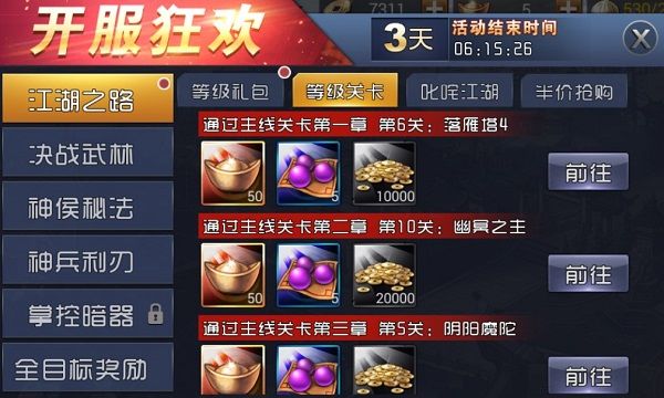 活动内容:等级礼包、月卡福利、开服基金、签到大礼应有尽有,诡术武林,血雨腥风,乱世江湖,等你来战!