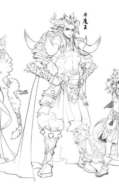 从一开始就确定了牛魔王需要给人一种充满力量感的造型,所以给他设计了厚重的铠甲和披风以凸显他的战阵统帅的身份。