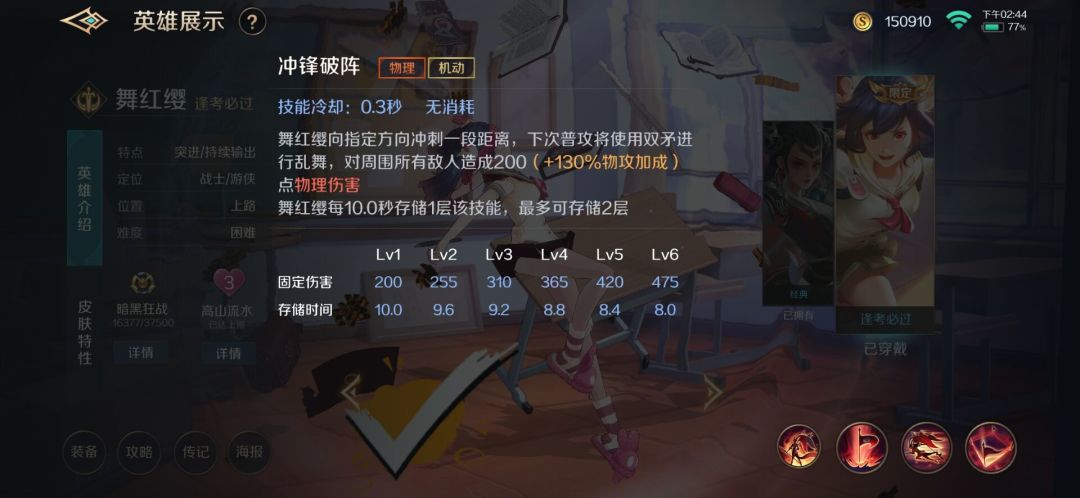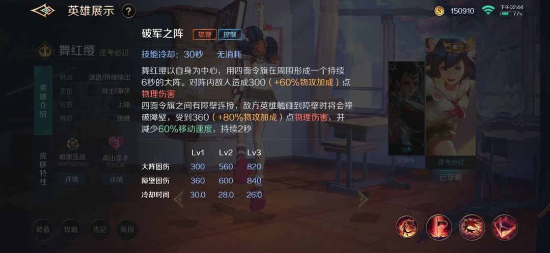 战意高涨,越打越爽,被动战意会给舞红樱拉一个护盾,但需要时间移动或者受到伤害