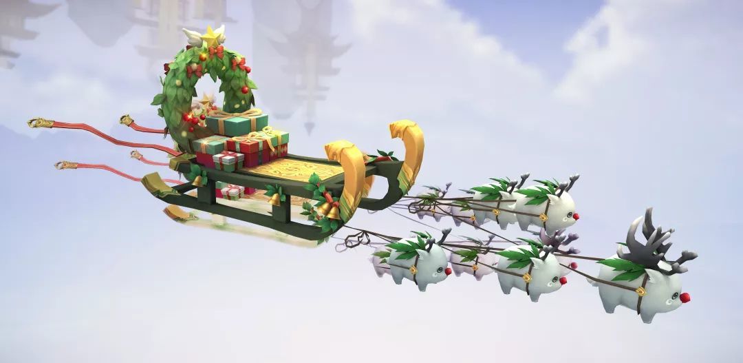 背后挂满星星与铃铛的松叶也是这架坐骑的点睛之笔,毕竟这样行驶在天空中的时候,披星戴月的感觉简直有牌面极了……