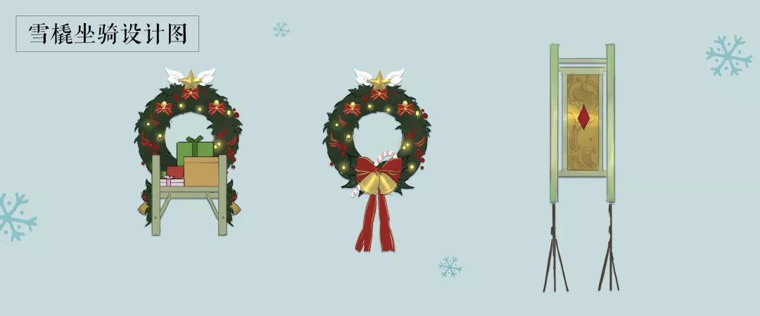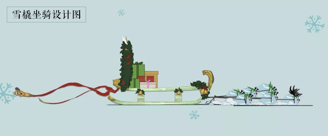 如果籼米仔细观察就会发现,拉雪橇的槐妖形态各异,而领头的那只头顶装饰着成年的鹿角,寓意着最有力,跑动也最为欢快呦~