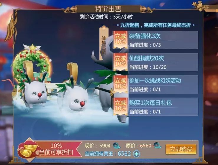 仙趣雪橇御空时装上架后限时九折起售!完成四个任务,还可享受超低折扣,半价购买!!