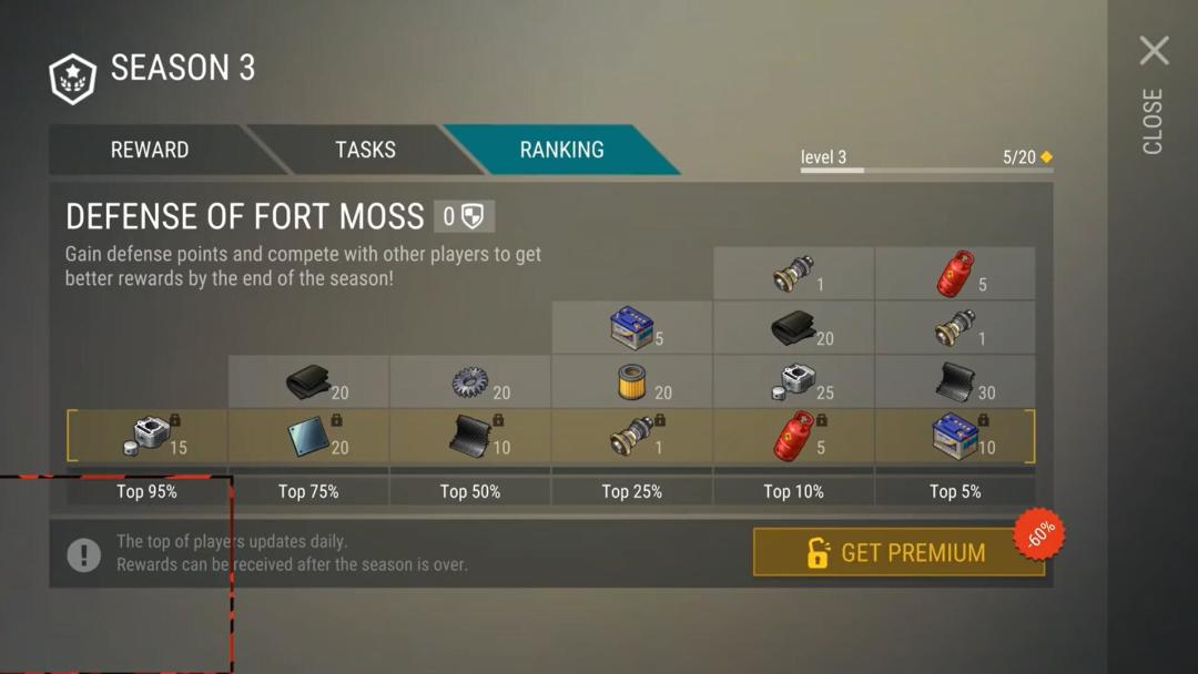 但是值得注意的是ATV传动装置作为第三季的奖励,或许它不是只在B堡中获得。玩家需要在第三季活动中排名达到Top25%前列才可以获得ATV传动装置。而因为ATV(全地形战车)的配方改掉了,所以现在传动装置或许不是特别被别的重要,第三季奖励可以看到,玩家需要在活动中排名达到Top10%前列才可以获得汽油罐(暂时叫汽油罐),排名达到Top5%前列才可以获得蓄电池(暂时叫蓄电池吧),所以,相比之下蓄电池比传动装置稀有多了!