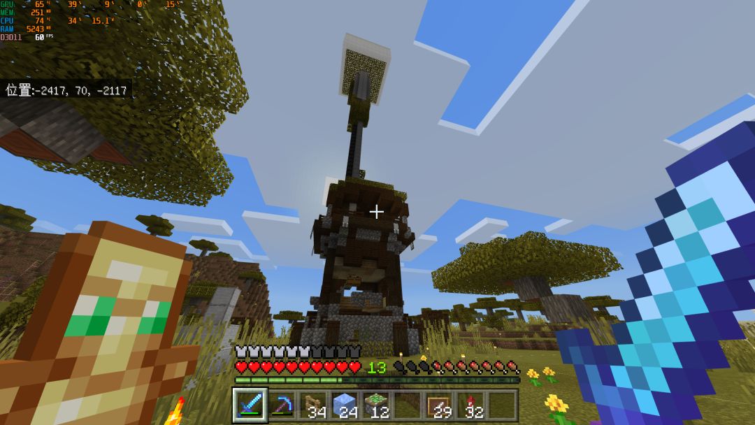 目前服务器内的功能性建筑有:杀凋机、史莱姆农场、掠夺者农场、守卫者农场等。话不多说直接上图