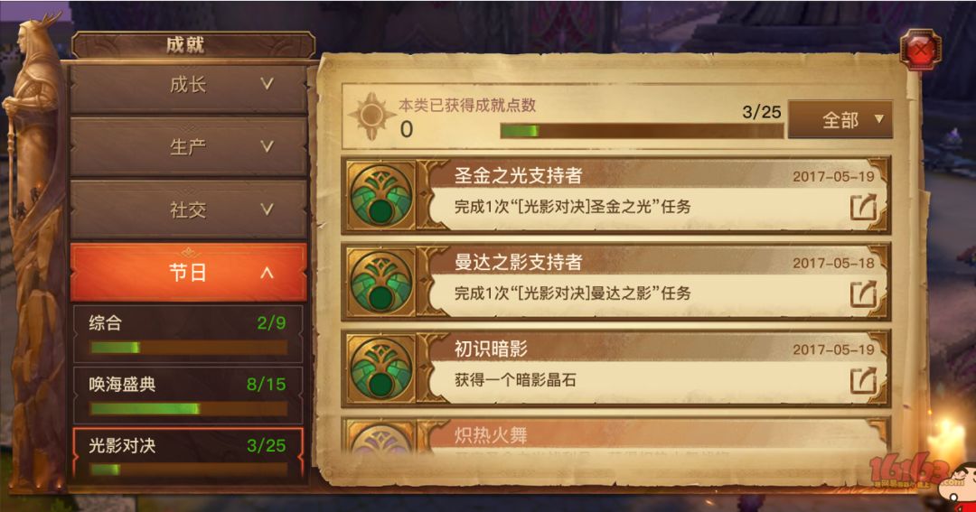 出新活动都会有相应的成就,现在还可以做的有唤海盛典和光影对决。
