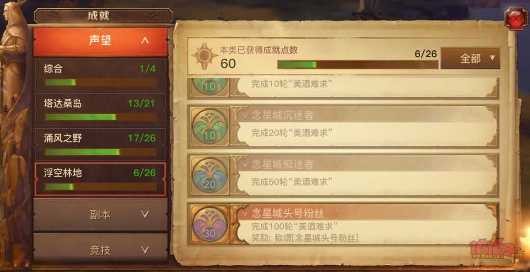 虽然每天只有前2个日常任务有奖励,但是要冲成就的话不要忘了每天其他声望的任务也要做掉,因为各声望日常完成次数也会有成就。10/20/50/100次都有对应成就。