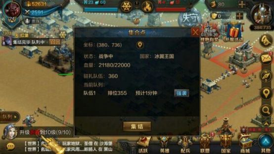 当名城战开始的时候我们就可以点击集合点集合了,咱们的系统会自动分配攻击炮台任务的,当血条没有的时候就是取得胜利的时候(当然也有可能会是失败的时候)。