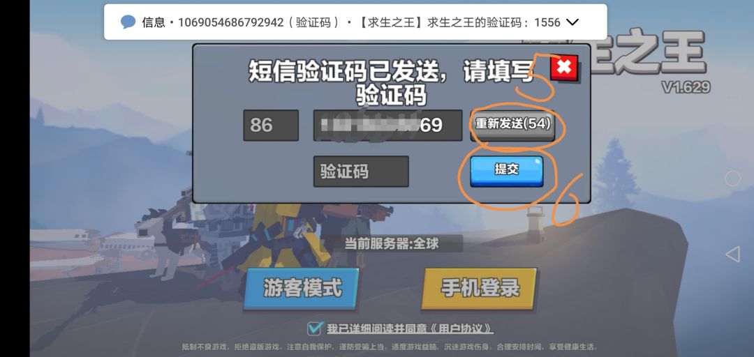 就是填完号码点5处按钮,不是要点重新发送的意思