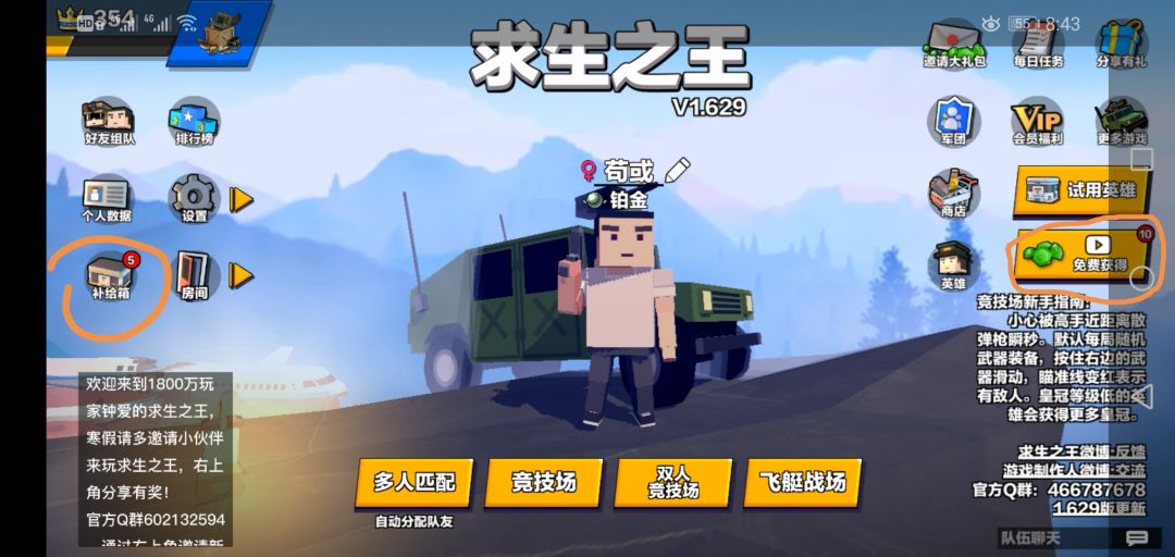 无限看广告刷钻、补给箱