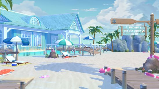 拥有海之家通行证后,窗外的景色将从纷繁的都市之景变成了闲适的海砂岛风光,在房间内即可感受轻柔的海风。阳台之外是一片私人沙滩,指挥使可以在沙滩上摆放吊床、遮阳伞等家具,打造属于自己的海滨小屋和沙滩乐园。