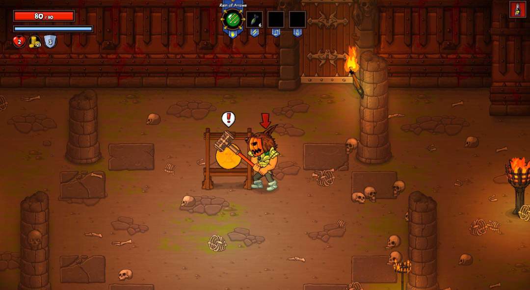 游戏最开始只有冒险者这一角色供玩家使用,冒险者属于一个在伤害、生命、特性技能上都中规中矩的角色。在完成一些特定成就之后,游戏将解锁野蛮人、海盗、刺客、巫师、战法师等角色,这些角色在设定上就显得有趣荒诞得多。比如野蛮人可以使用大剑进行长距离攻击,但是无法穿戴铠甲;海盗通过大炮和鹦鹉进行攻击,但是因为角色形象是木制假腿,就无法穿靴了(我个人比较喜欢海盗);战法师是一个最需要反复练习的角色,他的所有技能需要配合闪避键进行施放,像闪避键加攻击键施放魔法弹,闪避键加拾取键进行范围爆破,精通战法师将会使游戏呈现出全新的纵深。