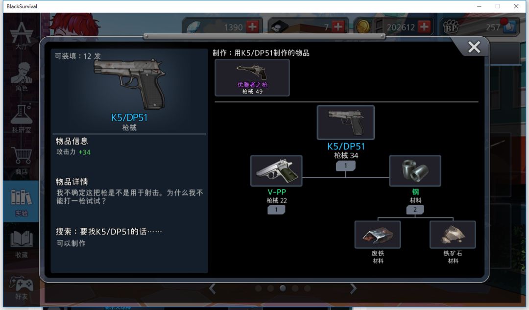 没啥说的了=-=懂的人都懂了,格子不够可以优雅者,散弹枪见到可以盲丢。码头后转点学校摸剪刀补激光笔