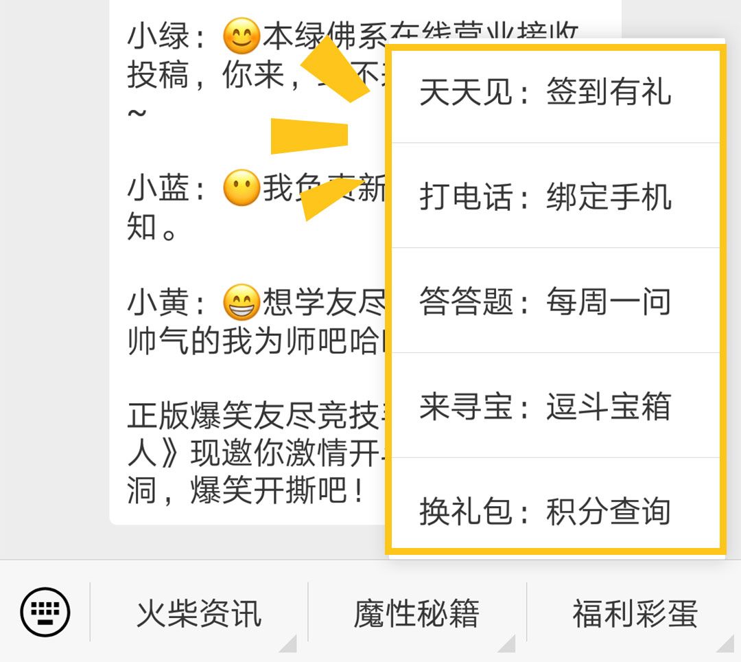 兑换方式→攒够一定的积分后,到微信后台回复关键词“积分兑换”+要换的奖品名称。即可召唤火柴人天团为你奉上礼包奖励!