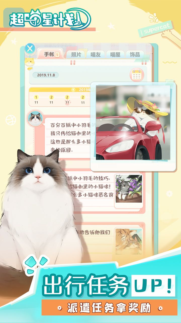 4、手账新增“喵屋”页签,猫咪信息随时掌握,还可以安排猫咪进入主场景。