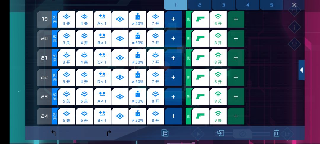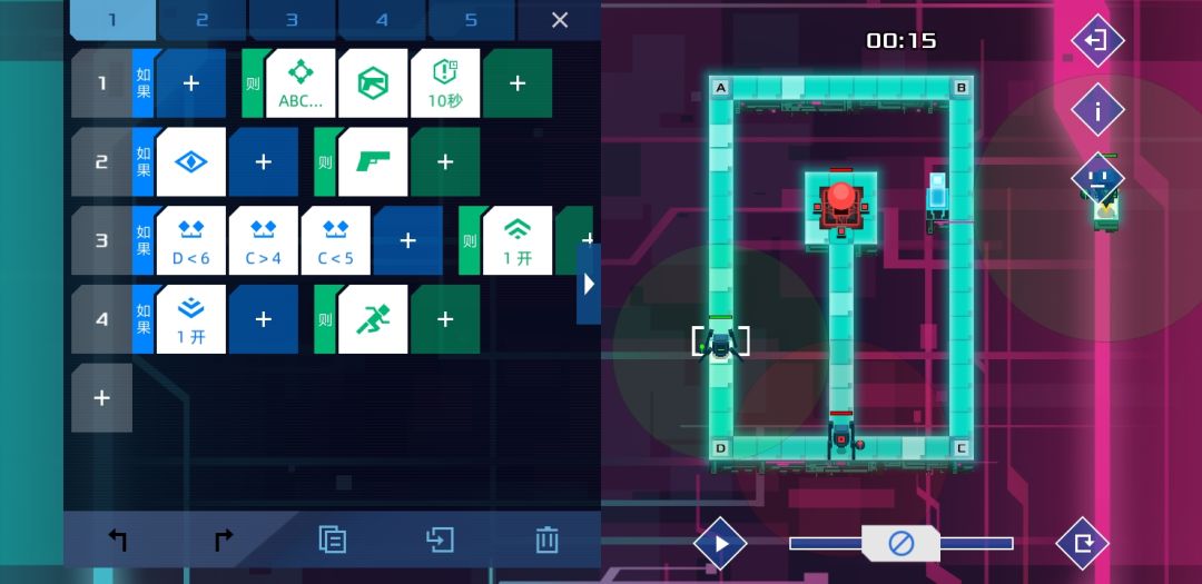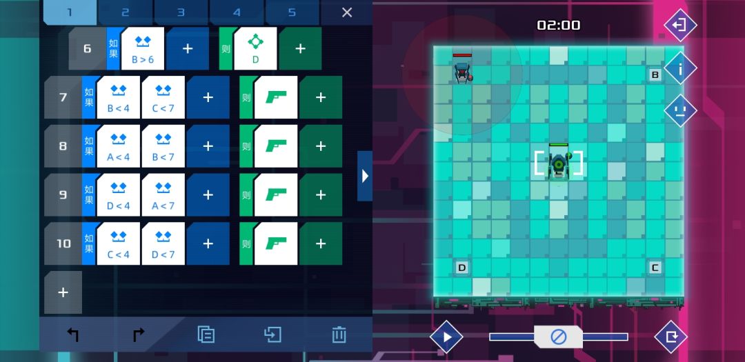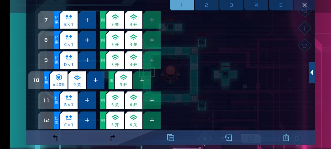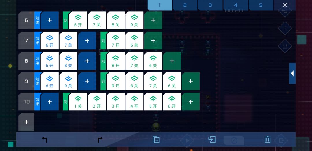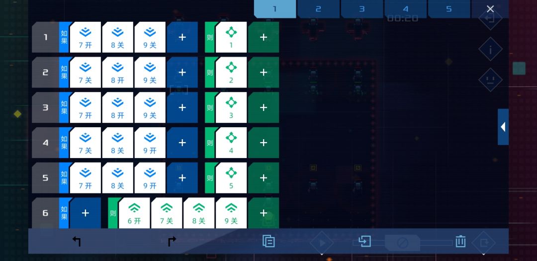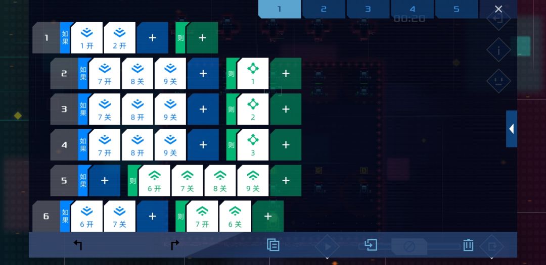 这关难度不算大,每枪打我方单位20%血,所以在80%血时用信号1 2判断第一枪位置,60%血时用信号3 4判断第二枪位置,40%血时用信号5 6判断第三枪位置,第四枪自动出来了,所以20%血时就根据前面的结果依次开枪,只要逻辑理顺了很快就能写出来。