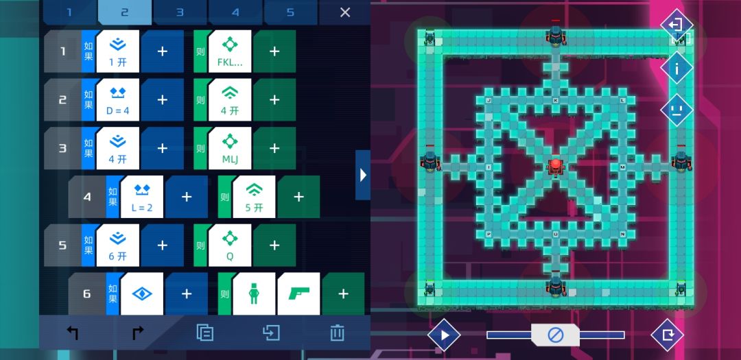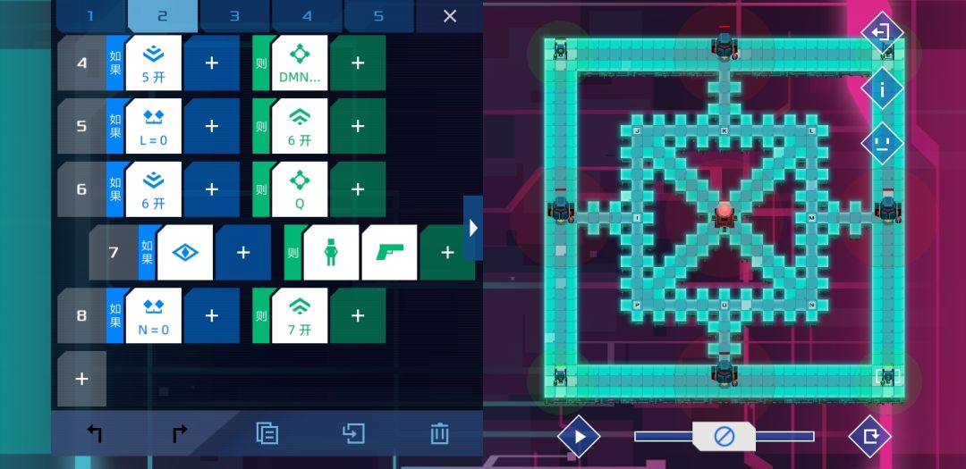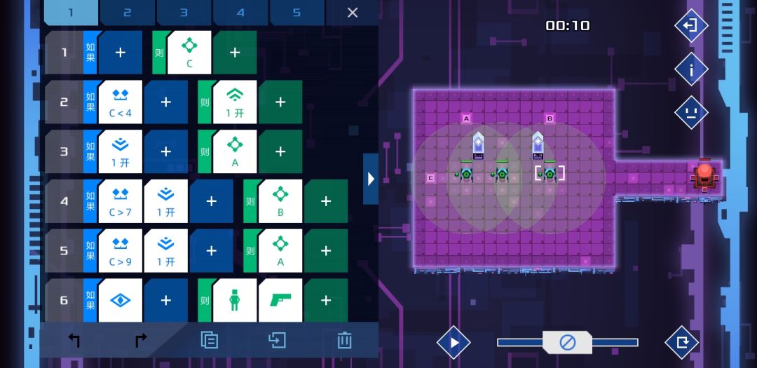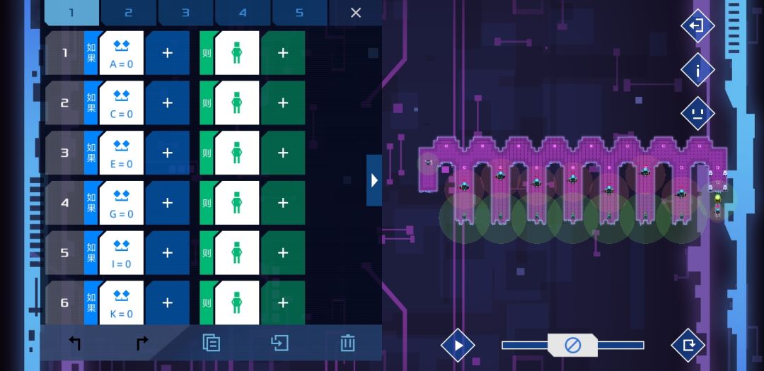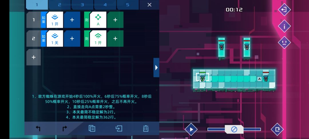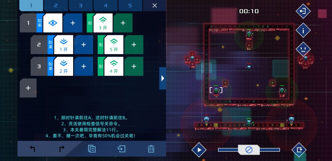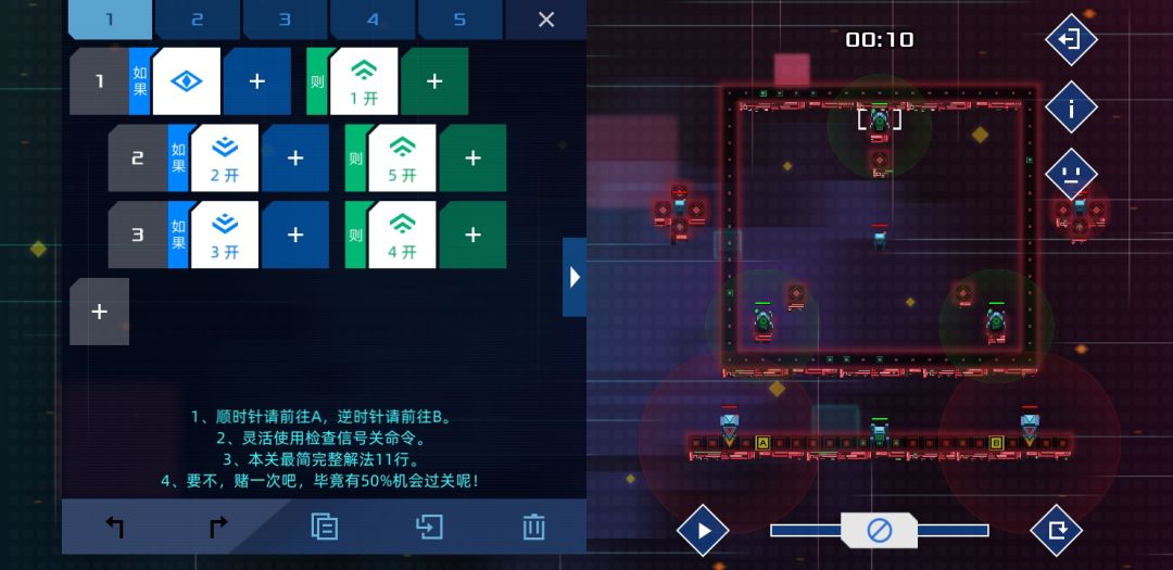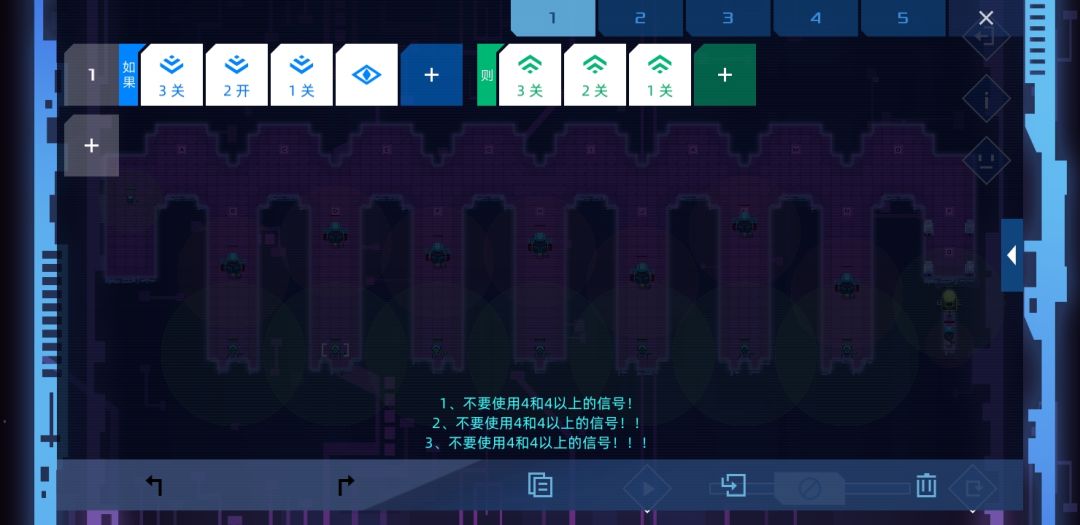 个人觉得设计的比较有意思的一关,是某个版本增加了新命令-检测信号关的产物。方法很简单,只要敌人路过两个单位就能根据顺逆发信号4或者5,等信号45都打开时,士兵没有满足条件,按惯性前往。