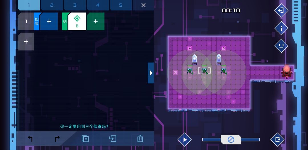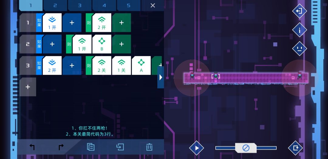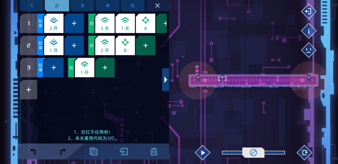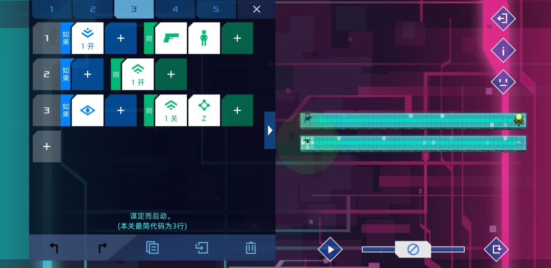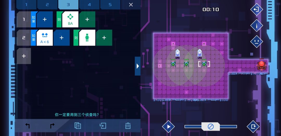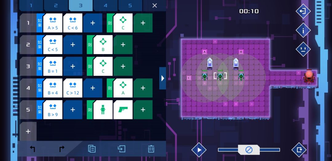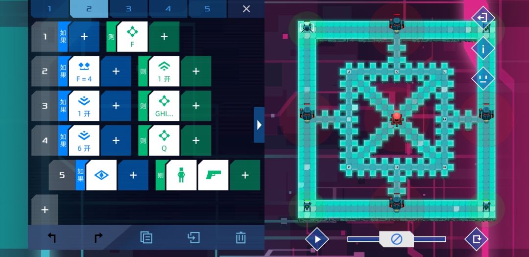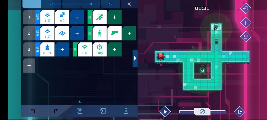 个人觉得设计的比较有意思的一关,是某个版本增加了新命令-检测信号关的产物。方法很简单,只要敌人路过两个单位就能根据顺逆发信号4或者5,等信号45都打开时,士兵没有满足条件,按惯性前往。