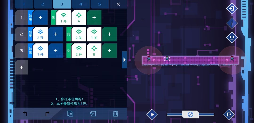 简单的关卡,运用检测信号关来省代码,可以4行过。难点在于这个地图失败了你也看不到原因。😏