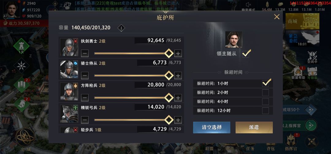 在前期,领主实力相对较低,一般都会选择单人直接侦查进攻,这个时候在受到敌人侦查时,就可以利用庇护所先将城内部队隐藏起来或者派出到附近的采集点,制造部队在外采集的假象,诱骗敌人进攻,待对方出兵后,马上将庇护所内的部队召回,避免对方使用行军加速快速冲城,然后等敌军行军至一半以后再将采集部队召回,如果敌方察觉召回部队,就可以根据地方领主的战力对照自己的战力判断其部队数量多少,如果少于己方,即可果断迁城至其旁边进行一波反掠夺,随后随机迁城逃跑或者转移到盟友身边,请求援助对其进行集结。