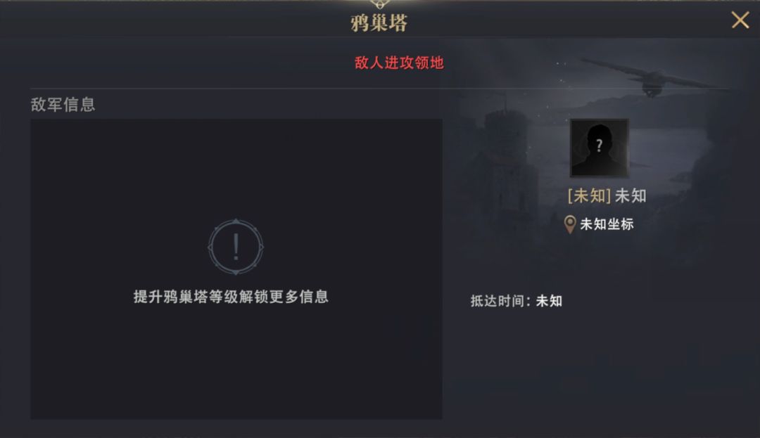 在《权力的游戏 凛冬将至》中,巢鸦塔是用来获取敌军意图的主要建筑,当有其他领主对你发起敌对行为,如侦查、进攻、集结都会触发巢鸦塔的警报。等级越高,侦测到的信息越详细。