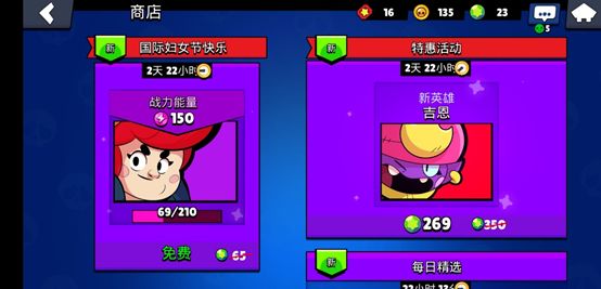 而在商店内,除了宝箱和双倍奖章外,我们日常还可购买的资源有金币和战力能量。战力能量比较好转化2金币=1能量,多为随机刷新。金币除开箱外也可通过宝石购买,根据20宝石/150金币的基础礼包换算,每颗宝石只能换取7.5金币,远不及乱斗宝箱的随机刷新,不建议玩家购买。
