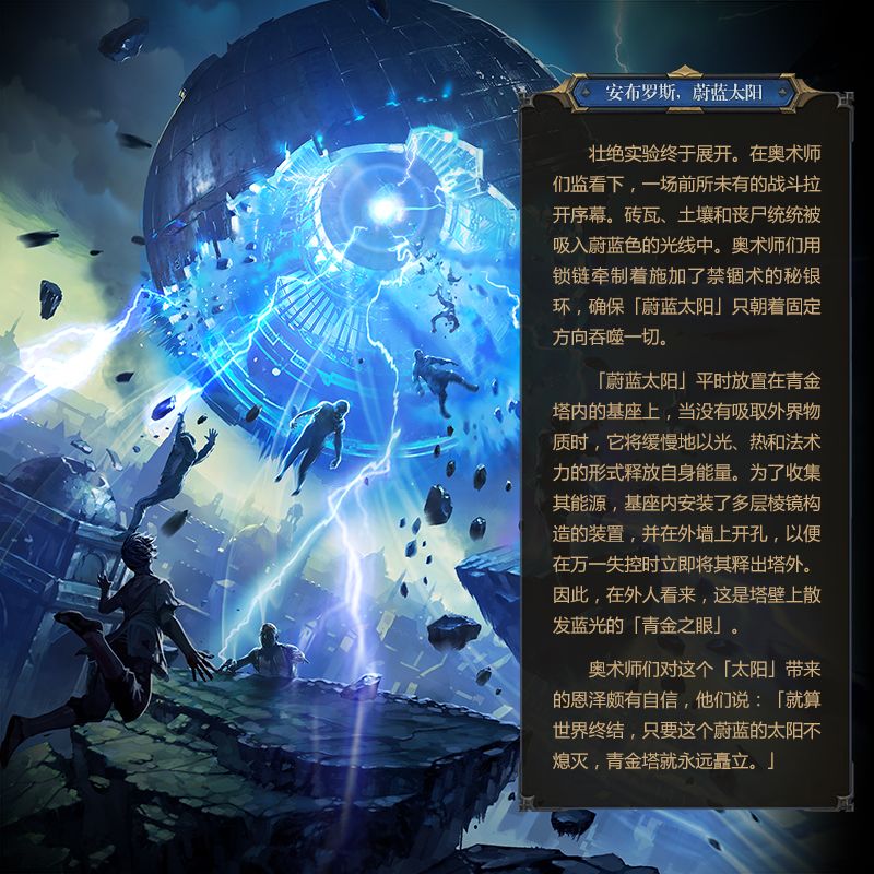 奥术师们对这个「太阳」带来的恩泽颇有自信,他们说:「就算世界终结,只要这个蔚蓝的太阳不熄灭,青金塔就永远矗立。」
