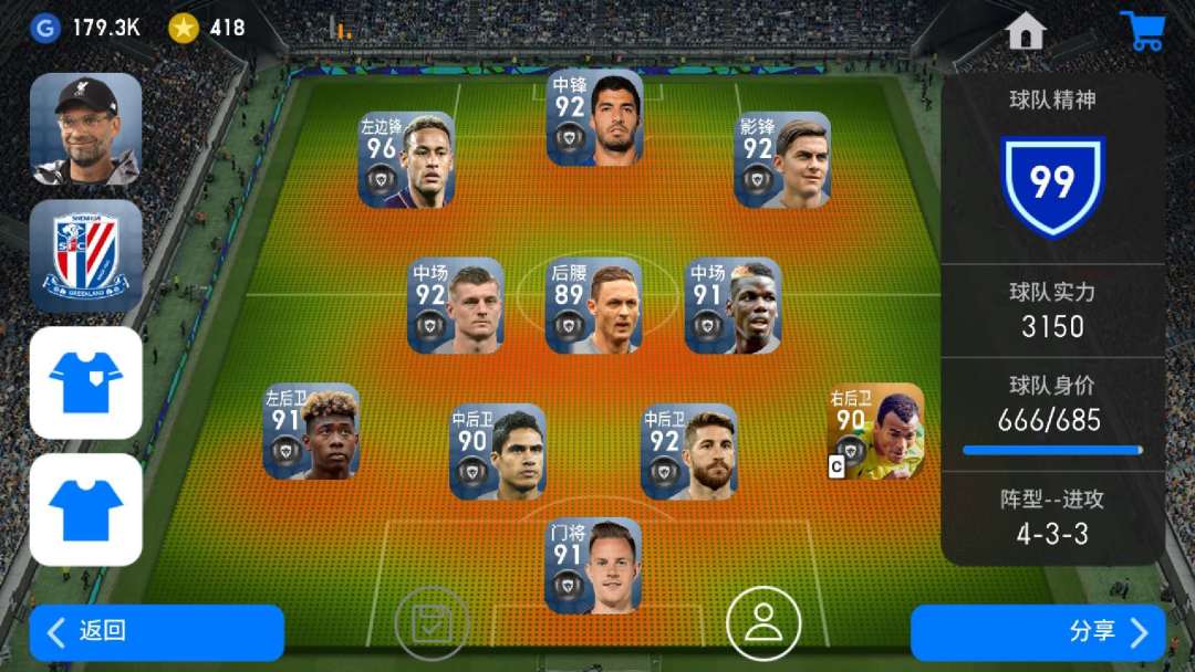 PS:肝好久,总算有套满级首发阵容了,真的要吐了....再看看姆巴佩还没满级...烦