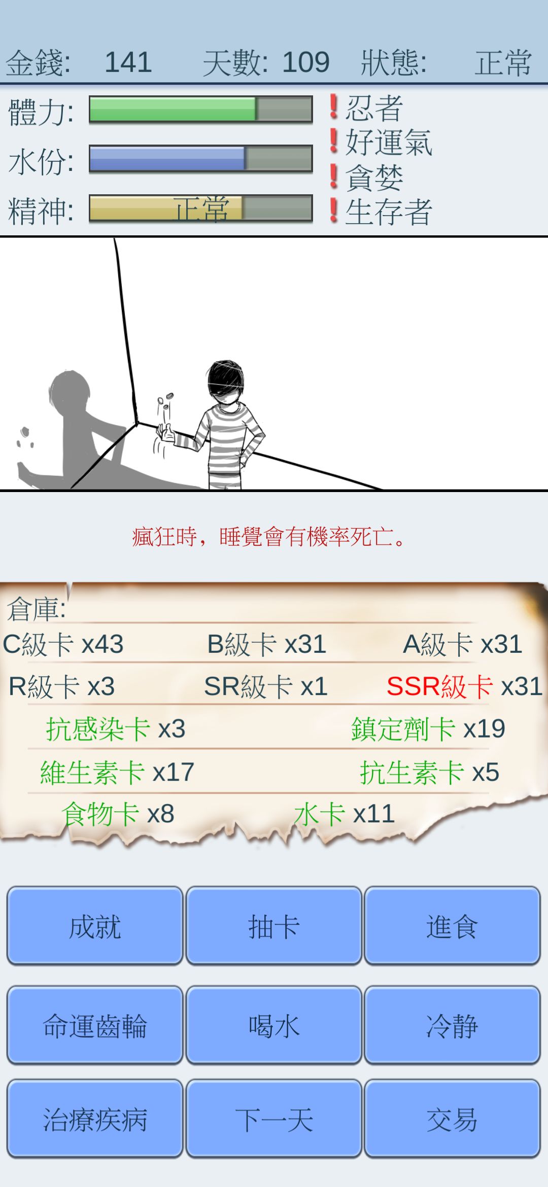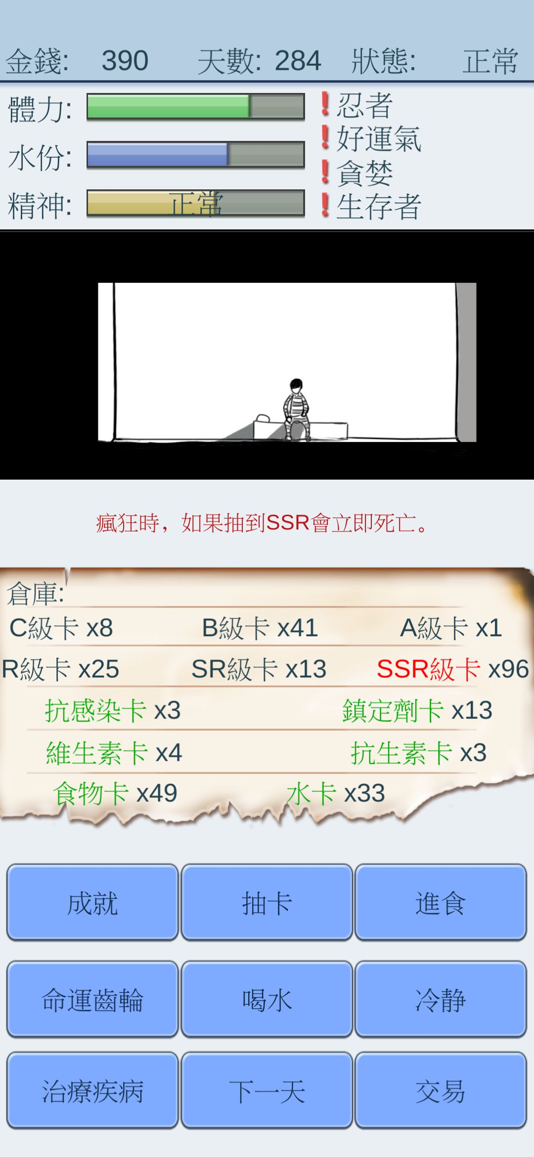 医疗卡几率↑+每日金币↑+水和食物消耗少+SSR几率↑=无敌!!