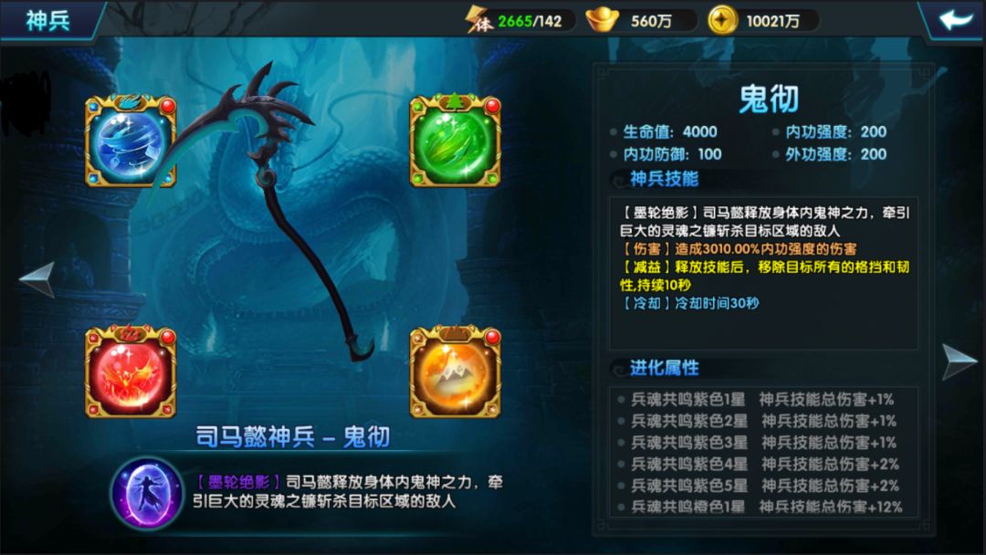 【内功】司马懿拥有鬼神之力可以移除敌人的韧性和韧性。神兵技能和普攻都能附加大量额外伤害。