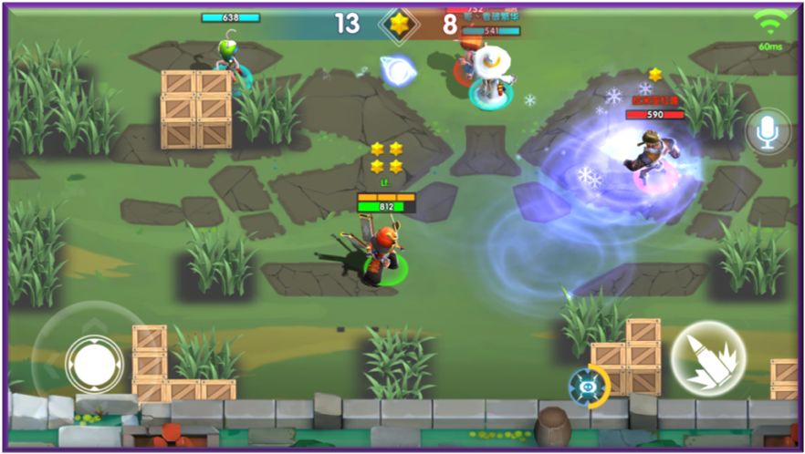 游戏开战后,玩家们需要充分利用游戏地图上的草丛、木箱等地形为自己创造战术优势。埋伏在草丛里,掌握对战时机对地方发起突袭,能够在瞬间杀敌军与手无足措。整场对战节奏十分的快,不管是追杀还是被追杀,都能让你完全沉浸到竞技的乐趣中来,真正颠覆你对传统团队竞技玩法的概念,体验到突袭、追击的快感!