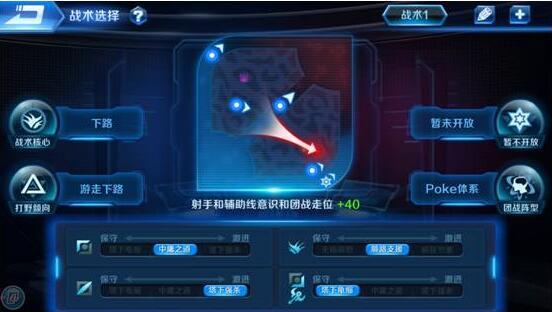 战术系统是针对整个队伍打法影响的一个战斗强化系统,还是以选手为核心来制定的。还是上面四人保Weixiao的例子,战术核心肯定是选择以下路为主,打野方向为多游走下路,保证下路发育,下路的风格以保守为主,尽量开出Weixiao的被动技能。