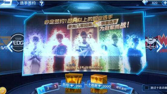 拿到钻石后第一件事当然是抽卡验血了啊,小编在这里劝大家,抽卡前多洗洗脸,平时多扶扶老奶奶过马路,这样才能抽卡时抽到稀有S选手,甚至S+选手哦!当然,除了钻石可以抽卡外,任务成就给的签约函也能抽卡,极品签约函更有机会收获S+选手。