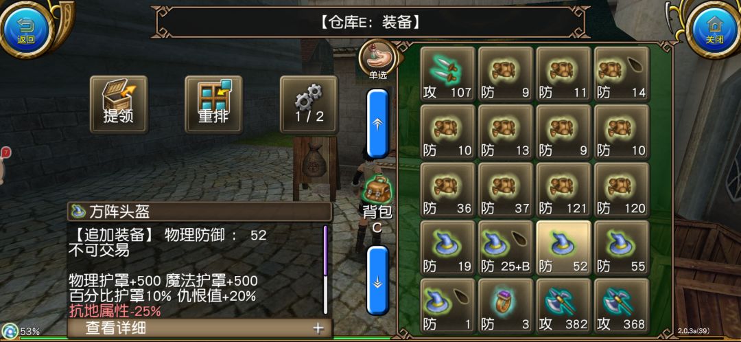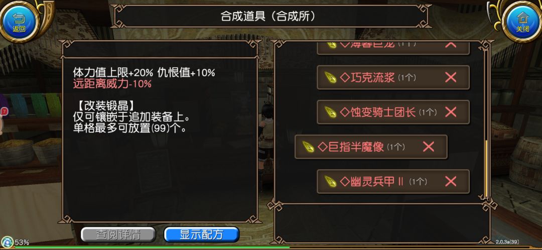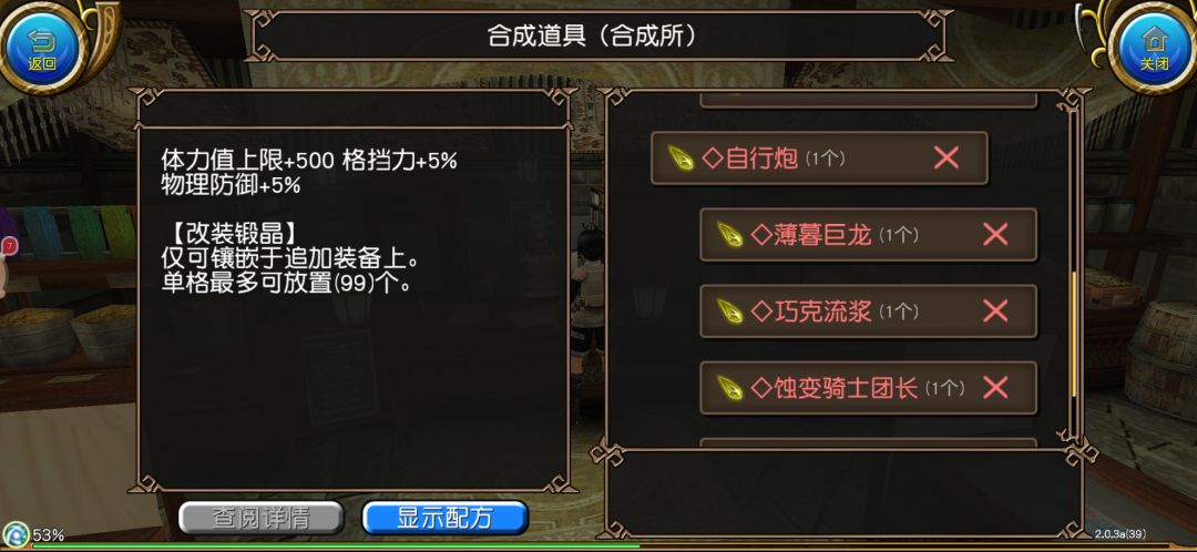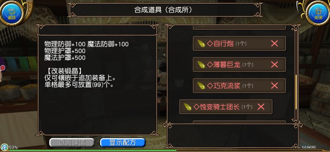 之后是追加,追加这里可以选择的有两个,一个是方阵头盔(工具箱中开出来的)另一个是秩序之刃(铁匠铺制作)。