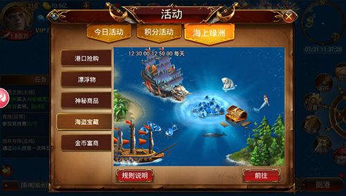 每天中午12:30-12:50,海盗宝藏都会准时出现。可以通过地图上的漩涡进入。我们的目标是那些精英怪,四处的普通怪就不用理他们了。每层所有的精英怪被击败,所有玩家可获得通关奖励。