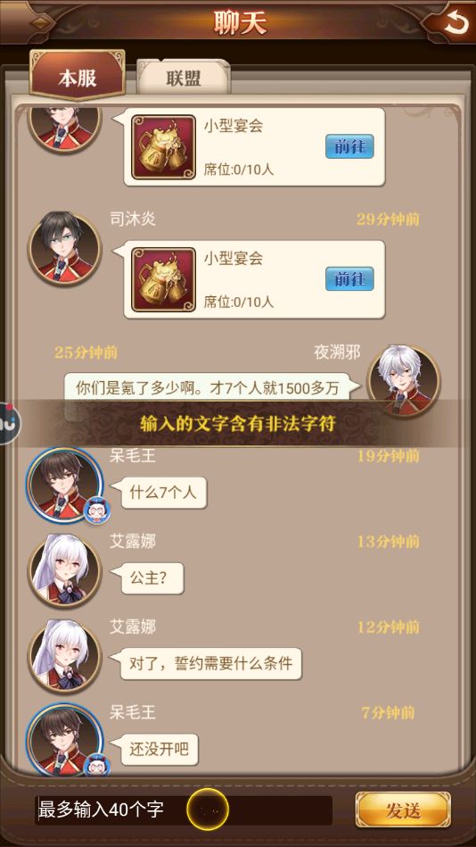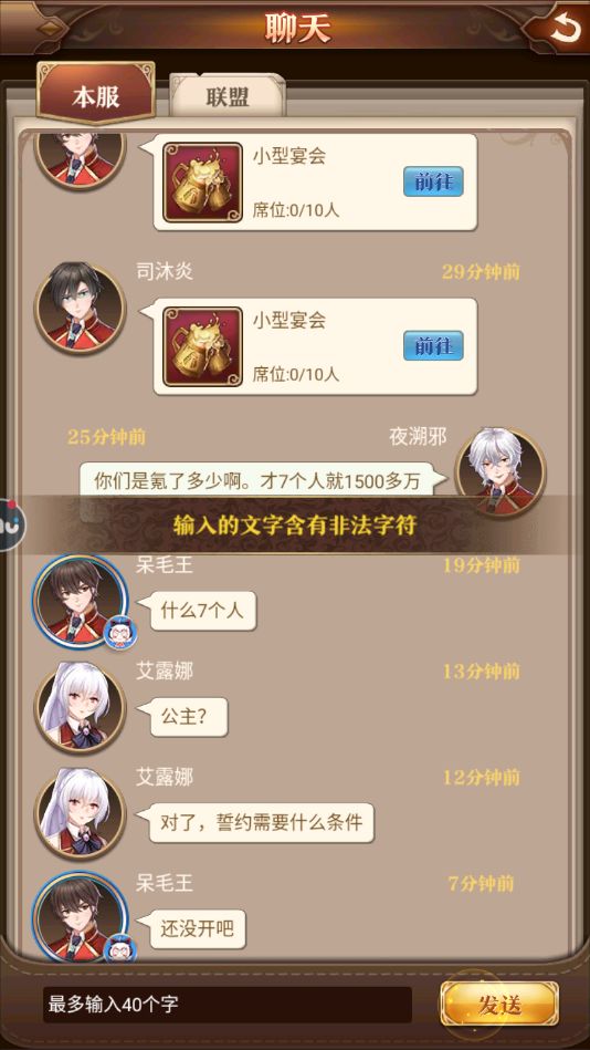 这是怎么回事?无论我打什么他都会显示有非法字符,敢情“你”这个字是非法字符?我裂开,如果真是游戏问题希望官方可以好好处理一下这个问题(有时候可以发,但有时候又不能发)